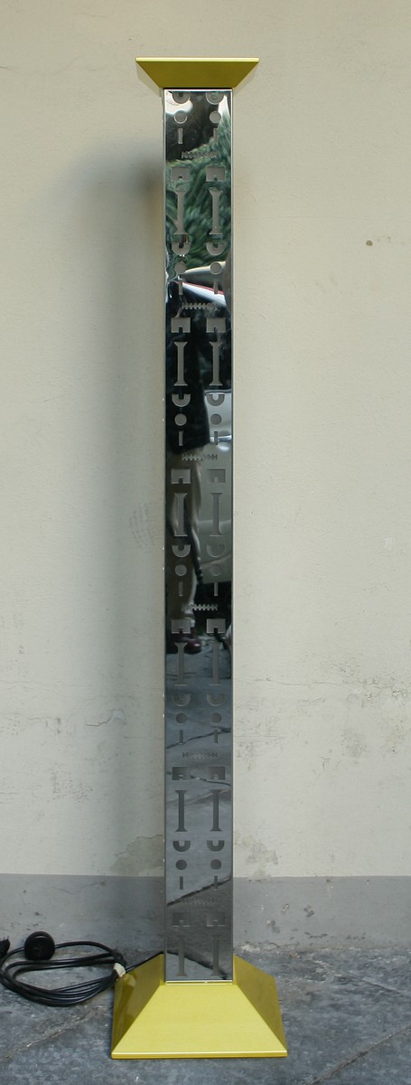 GUERRIERO ALESSANDRO Attribuito. Lampada da terra della serie ' Ollo ' per Alchimia. Floor lamp from the 'Ollo' collection for Alchimia. Acciaio lucidato e legno laccato. Cm 35x185x35.