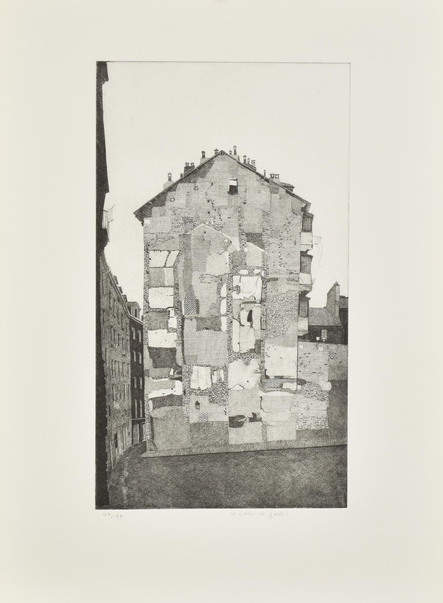 incisione su carta, battuta cm28x50, foglio cm 70x50; es 44/99