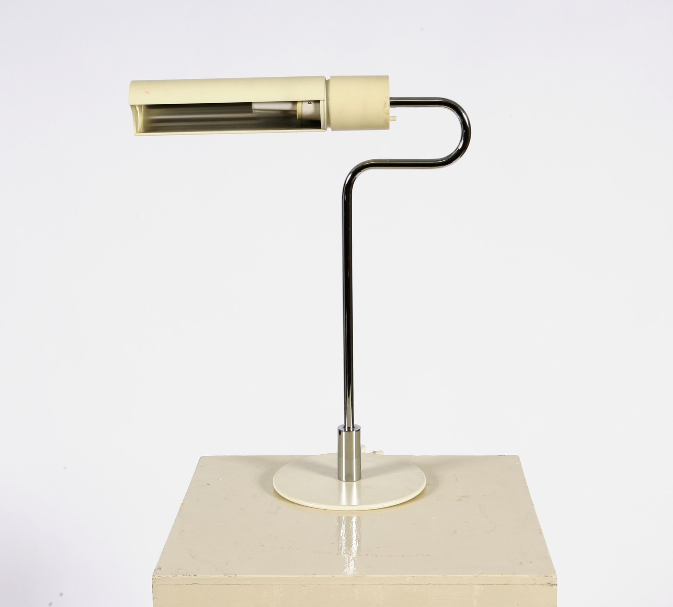 PRODUZIONE ITALIANA - ITALIAN WORK. Lampada da tavolo. Metallo verniciato e cromato. Table lamp in chromed and painted metal. Metallo. H Cm 48. 1970.