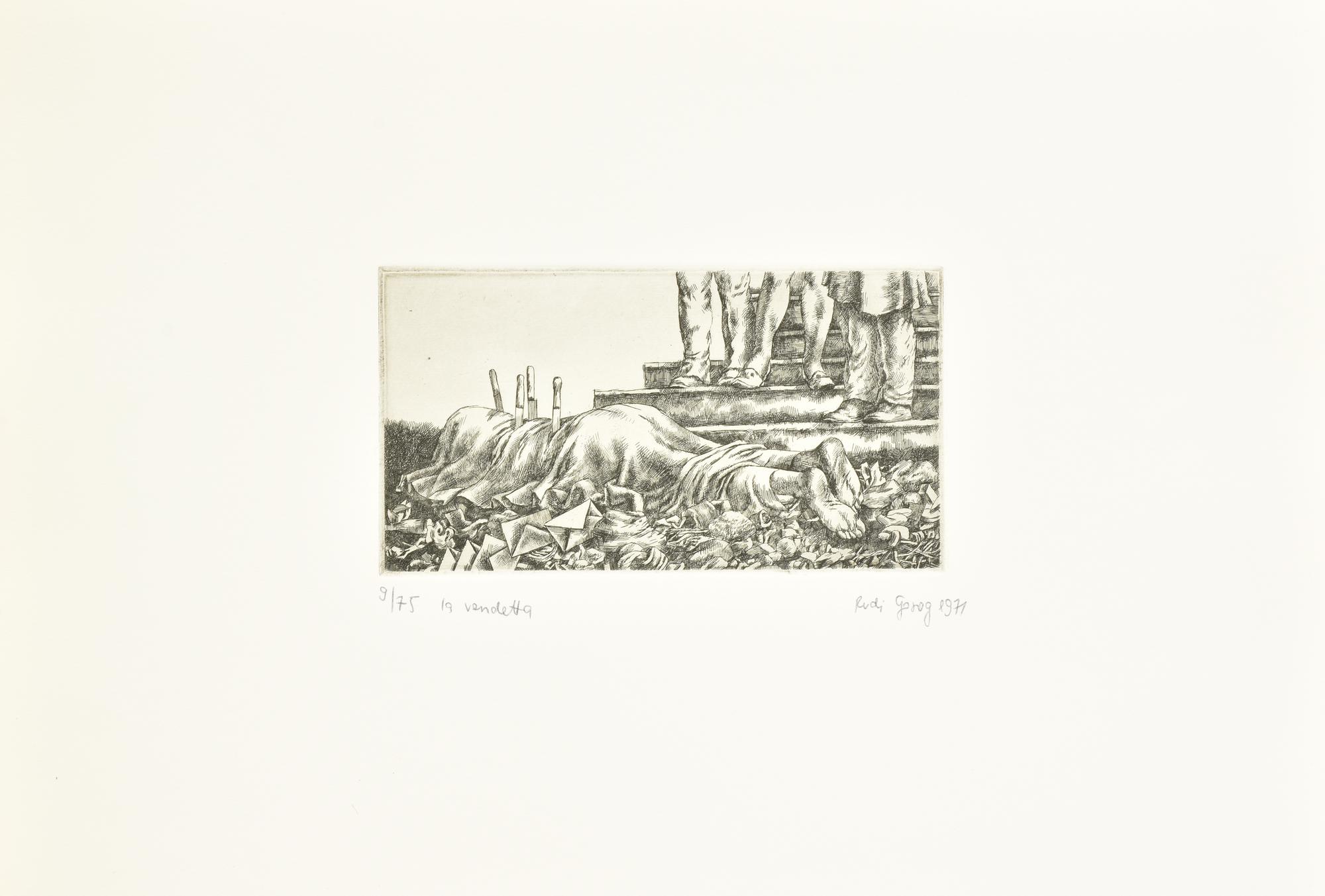 Rudi Gorog LA VENDETTA incisione su carta Fabriano, battuta cm 11x20, su...