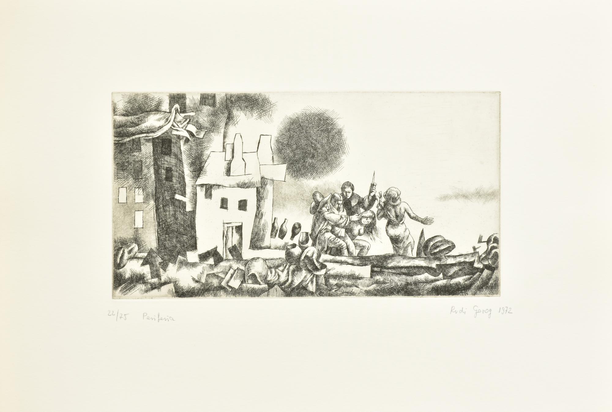 Rudi Gorog PERIFERIA incisione su carta Fabriano, battuta cm 16x30, su foglio...