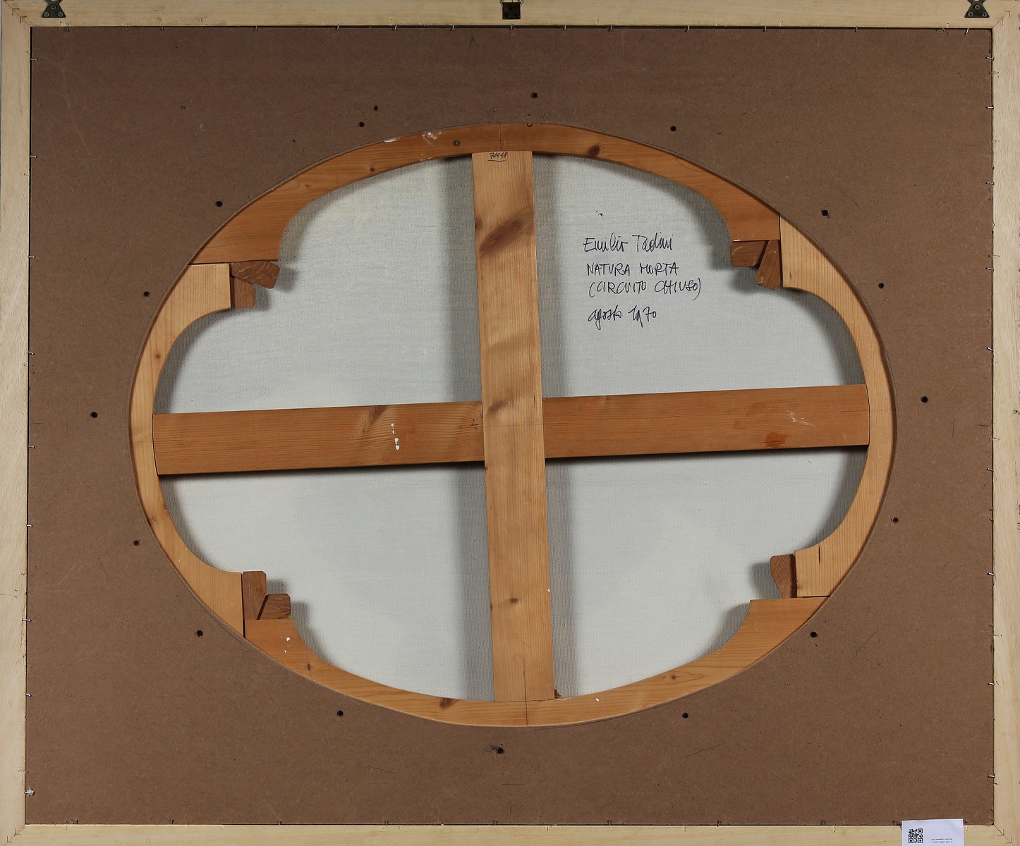 TADINI EMILIO (1927 - 2002) Natura morta (ciruito chiuso). 1970. Olio su tela . Cm 100,00 x 81,00. Al retro firma, titolo e data. Cornice presente