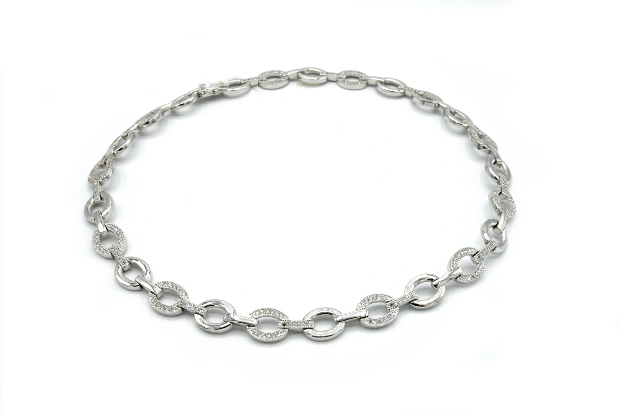 in argento 925, composta da maglie lucide alternate da maglie decorate da pavè di zirconi