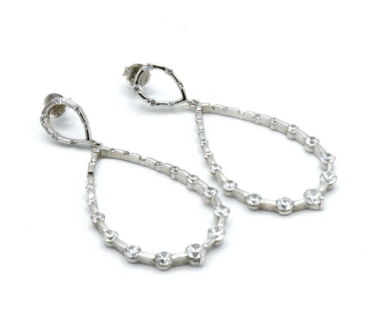 ORECCHINI PENDENTI A GOCCIA in argento 925, decorati con piccoli zirconi in...