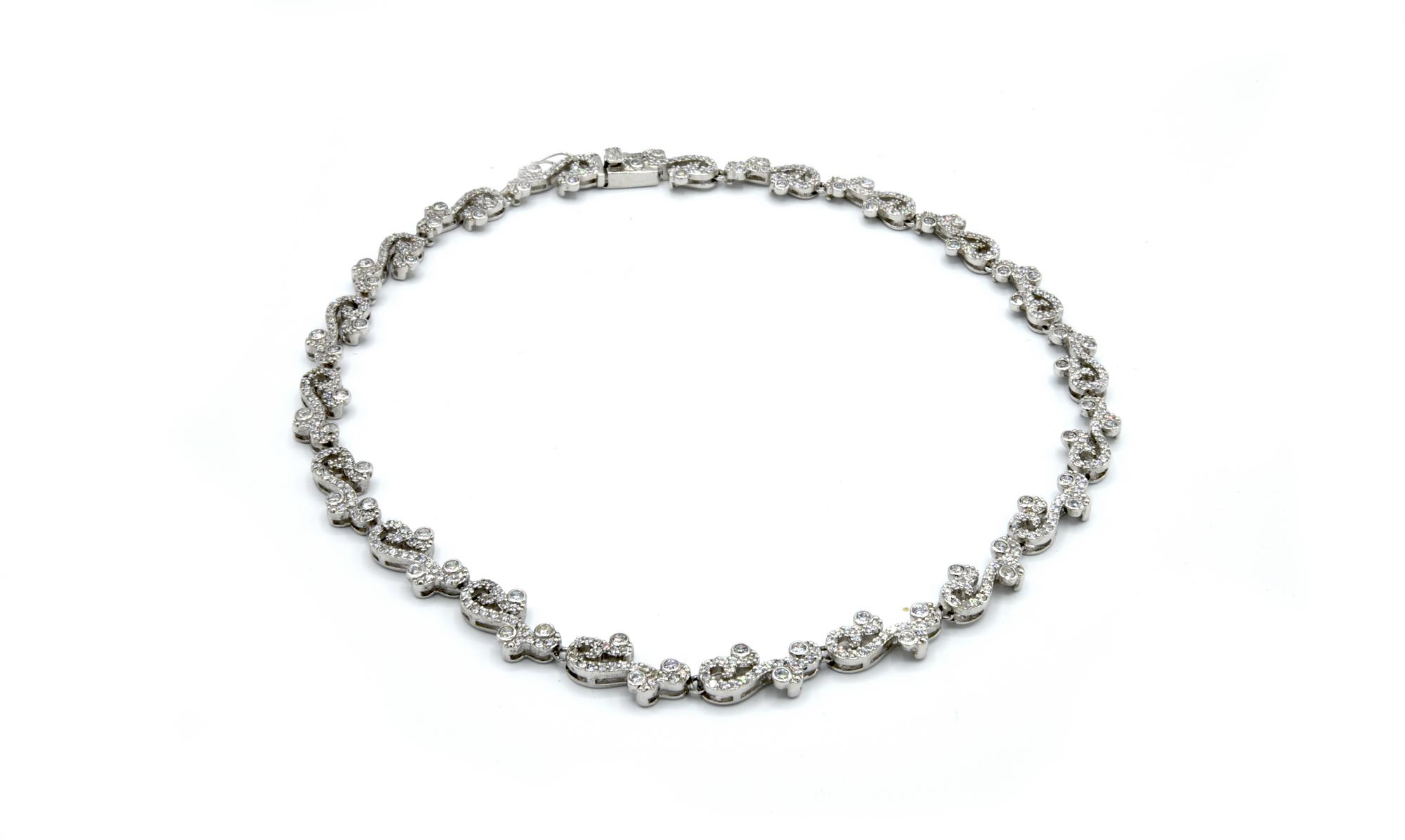 COLLANA GIROCOLLO CON MOTIVI A VOLUTE in argento 925 decorate da pave' di...