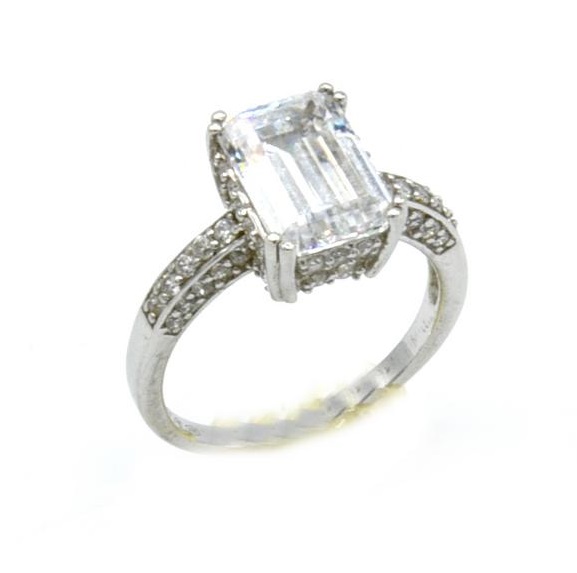 in argento 925 con al centro grande zircone rettangolare, mm 11x8, e pave' di zirconi ai lati