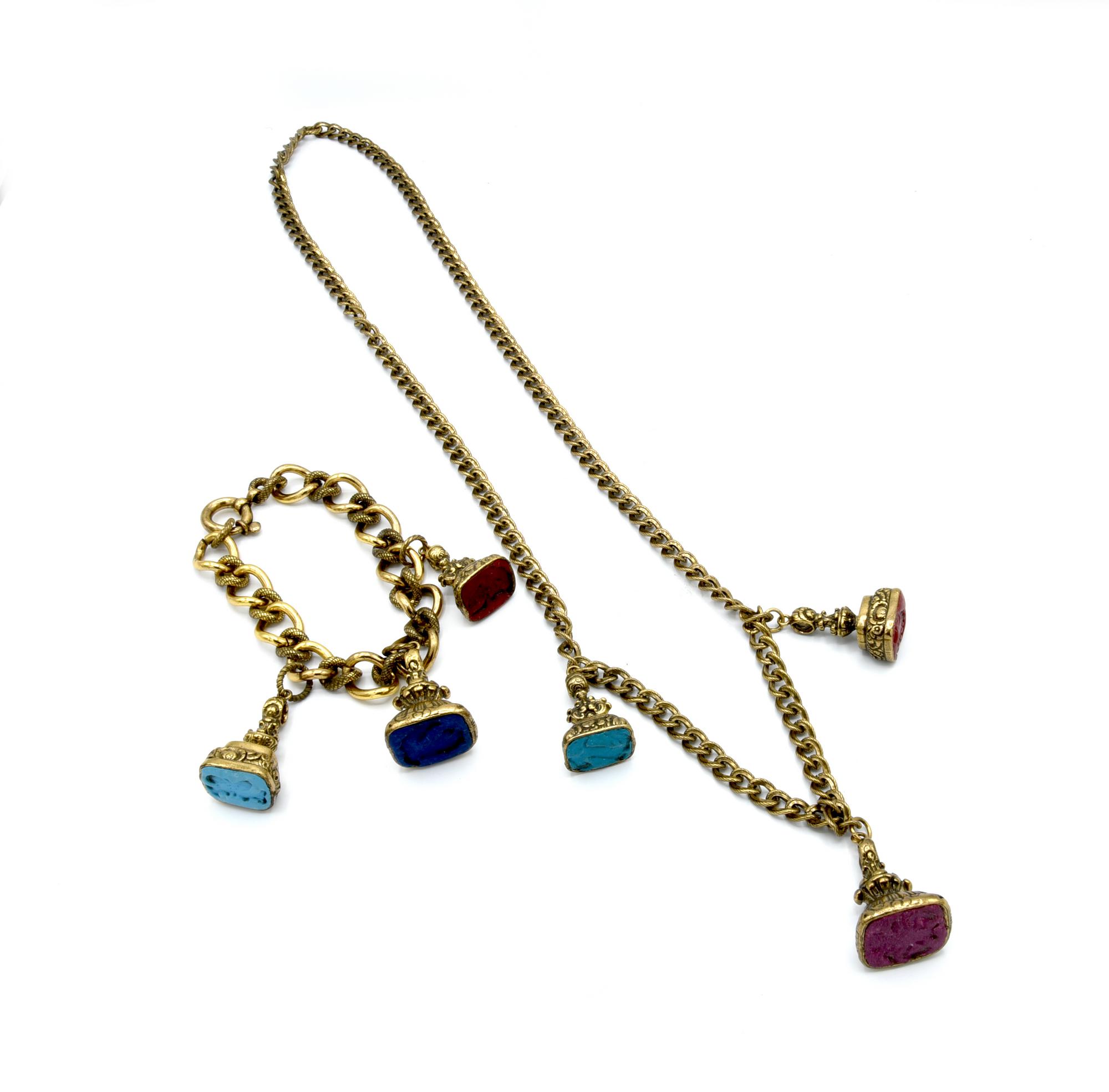 COLLANA E BRACCIALE IN METALLO DORATO CON CHARMS CON SIGILLI