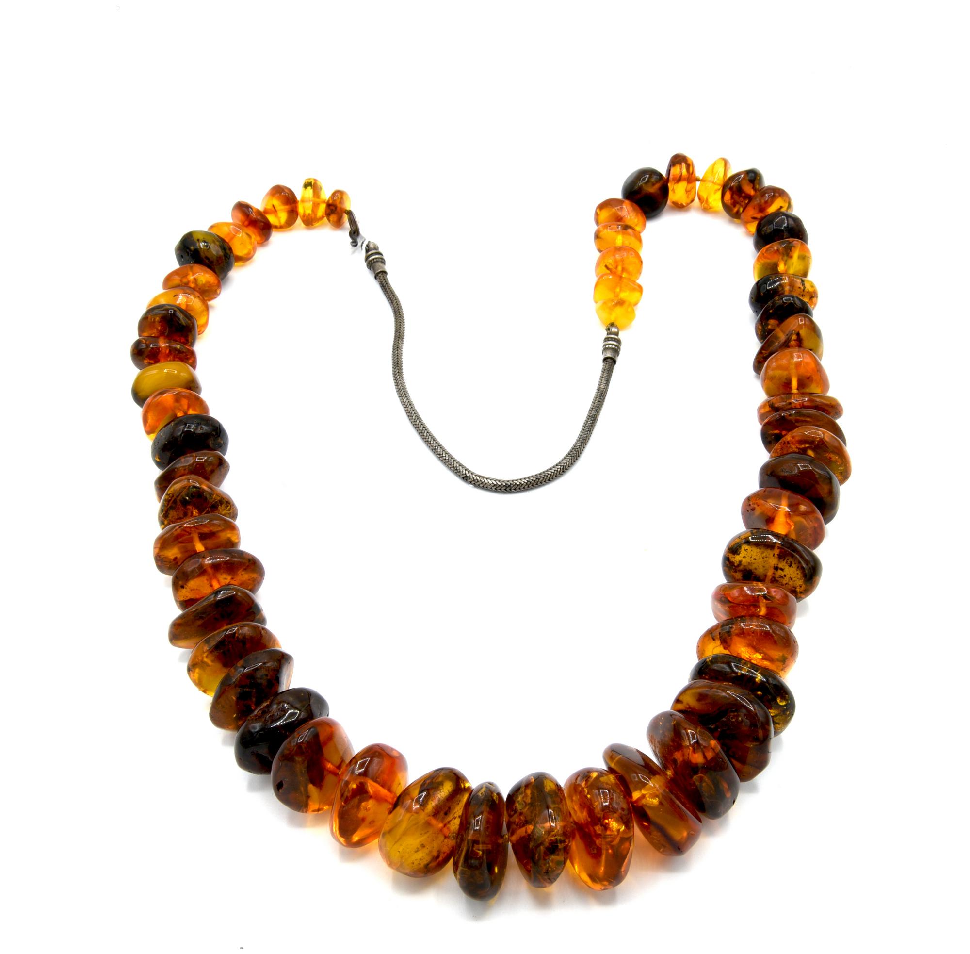 COLLANA IN AMBRA CON ELEMENTO IN ARGENTONE lunghezza cm 44