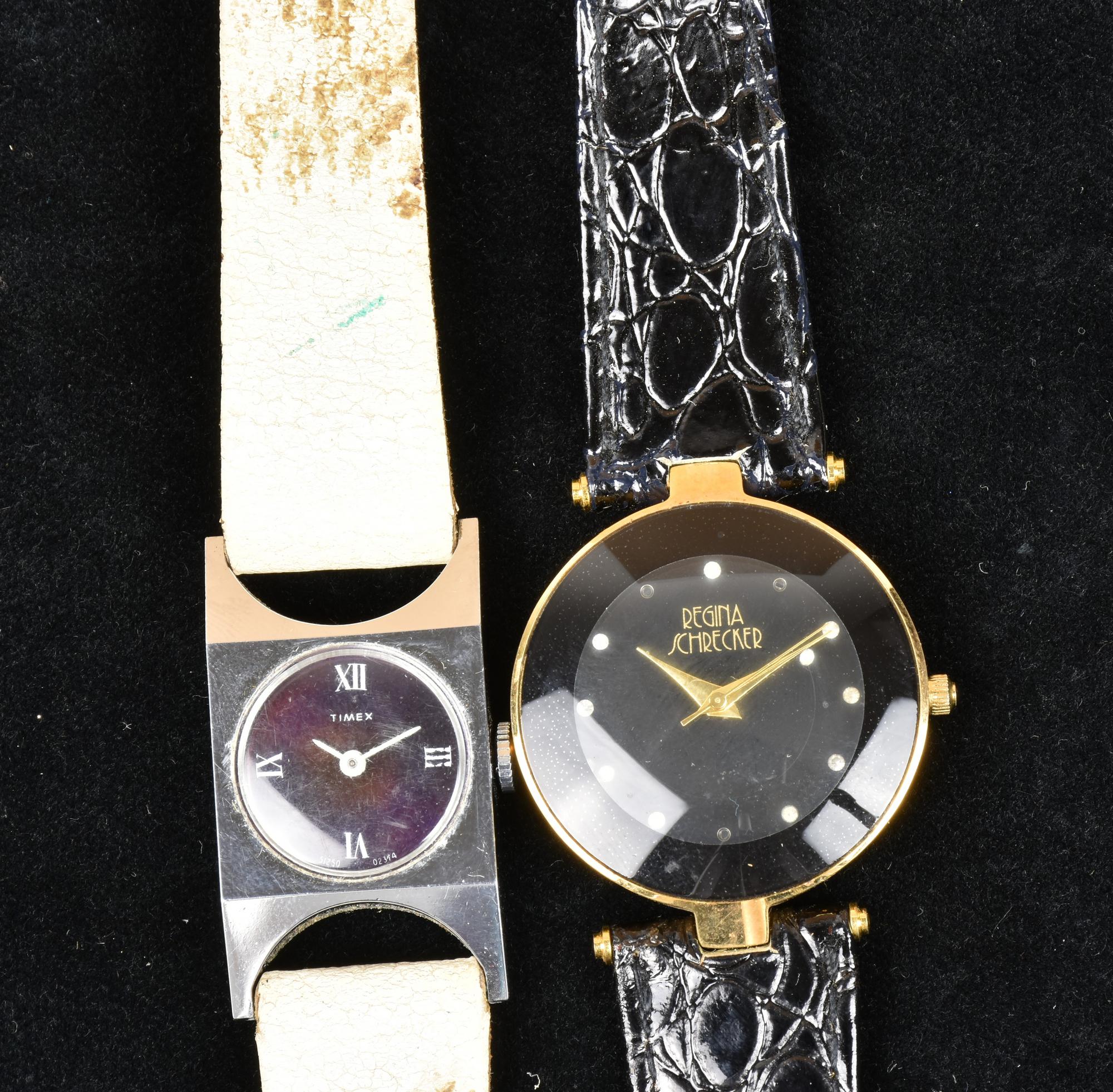 LOTTO DI DUE OROLOGI Regina Schrecker e Timex, acciaio e cinturini in pelle...