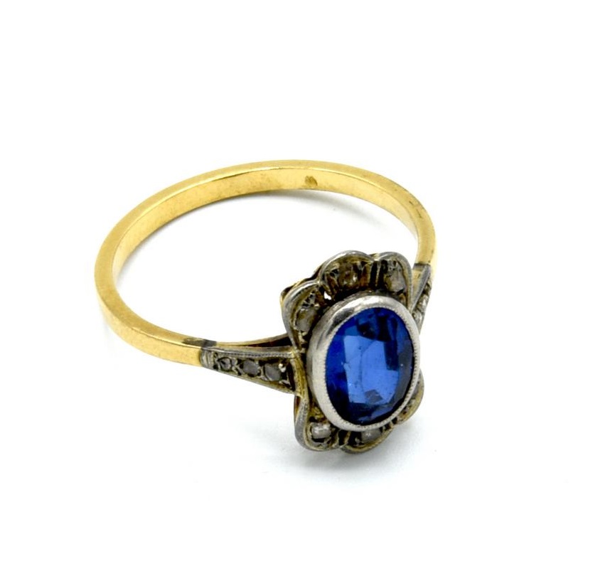 in oro giallo e bianco 14 kt con zaffiro ovale al centro