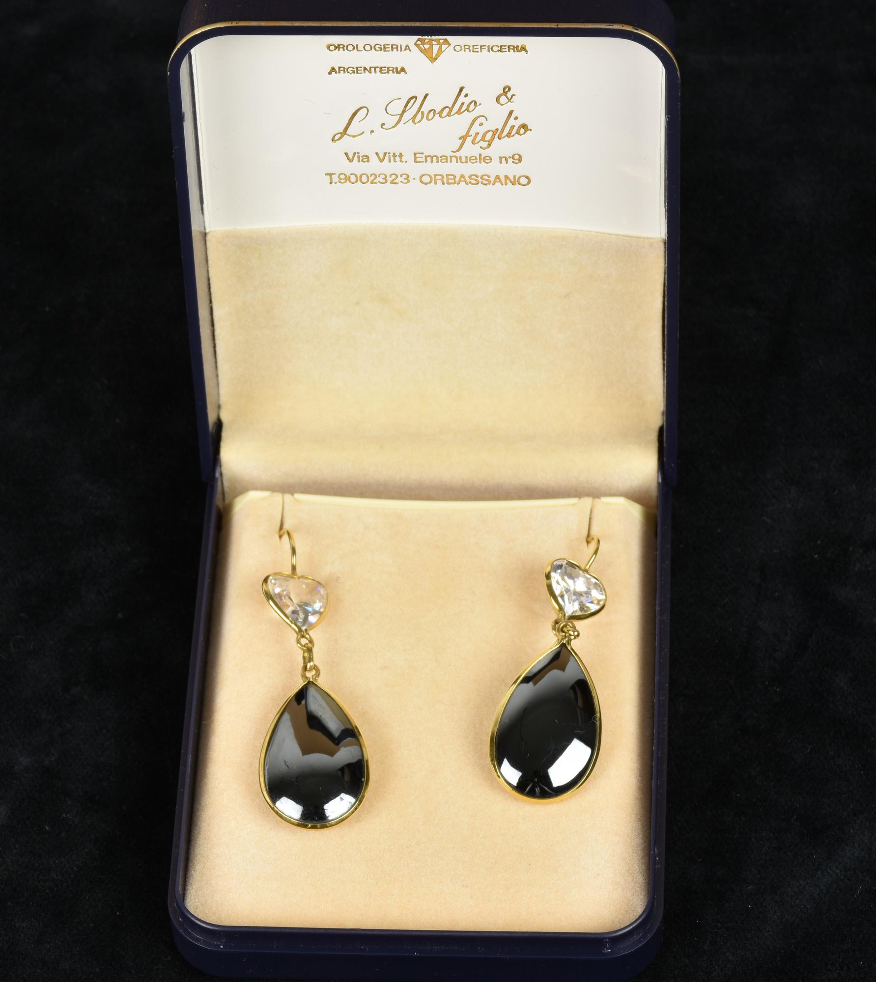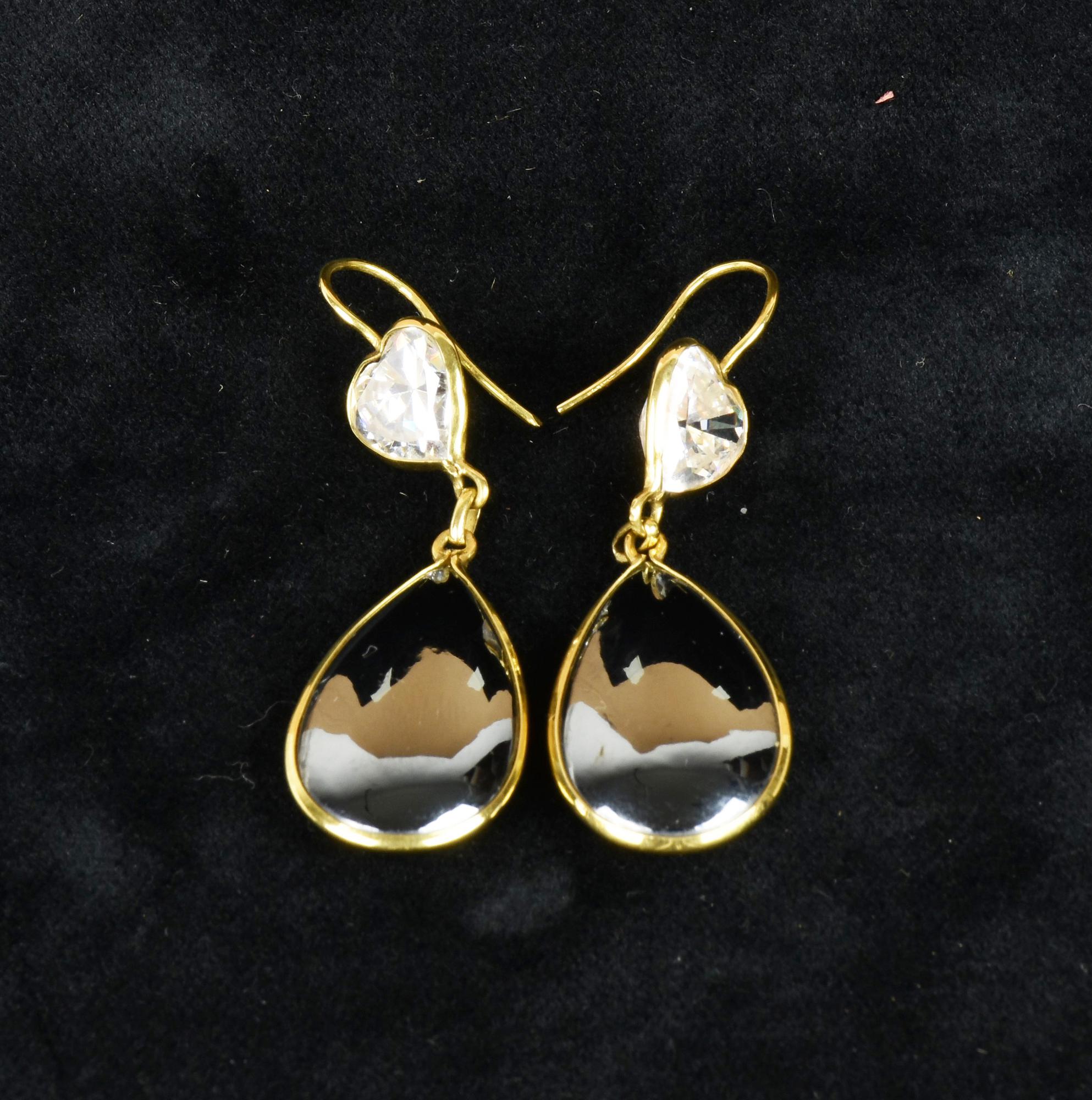 Lot 232 | ORECCHINI in argento dorato con Swarowski a forma di cuore e pietra a goccia...
