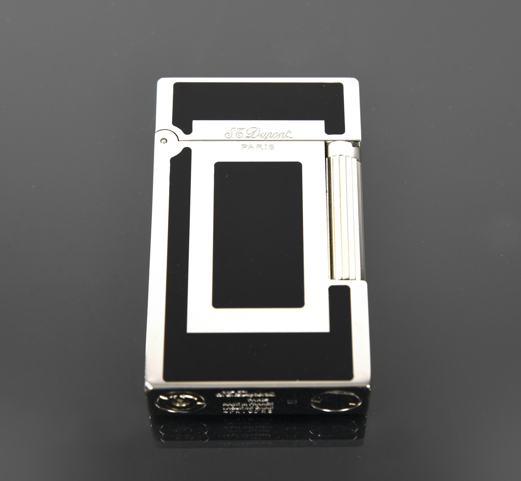 ACCENDINO DUPONT in acciaio e lacca, cm 6x3,5x1 inciso Dupont, Paris sul...