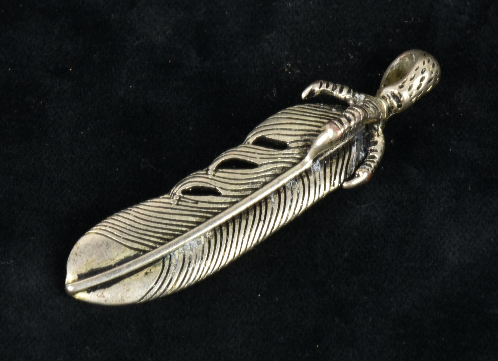 in metallo argentato a forma di piuma trattenuta da artiglio