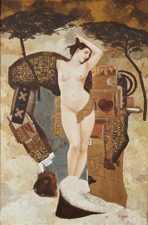 AUTORE NON IDENTIFICATO Senza titolo. Tecnica mista su tela. Cm 60,00 x 90,00. Firmato D. Epple in basso a destra. Cornice presente