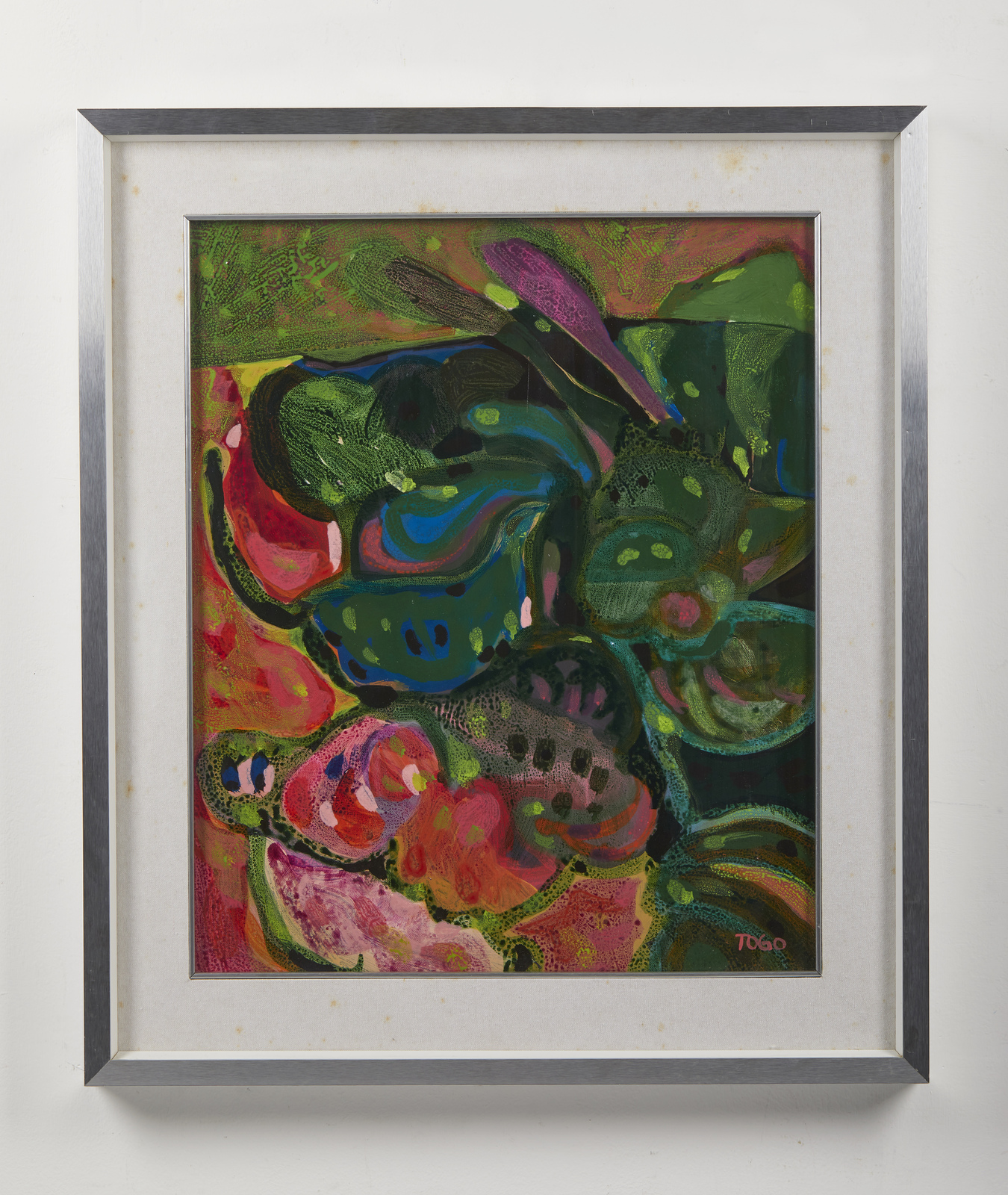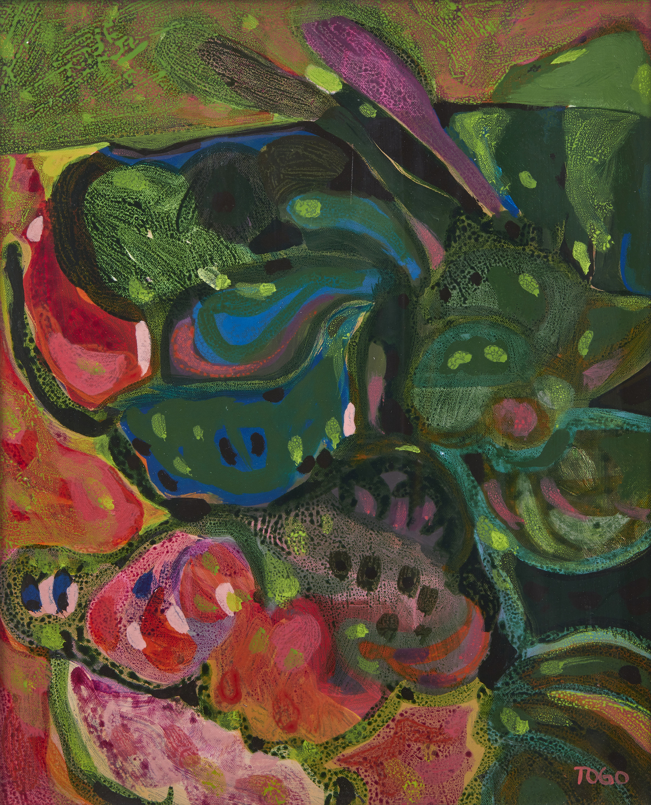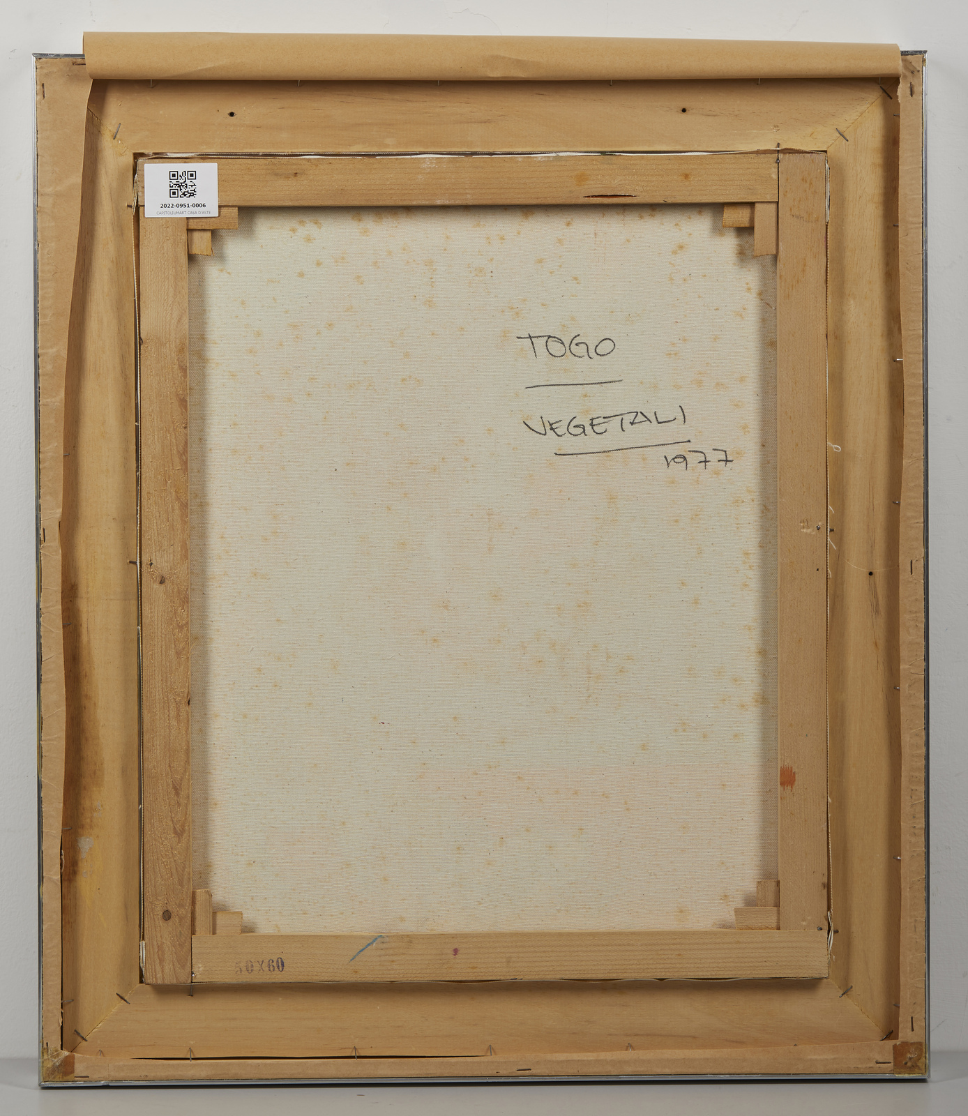 TOGO (n. 1937) Vegetali. 1977. Olio su tela . Cm 50,00 x 60,00. Firma in basso a destra. Al retro titolo, firma e anno. Lievi difetti. Cornice presente