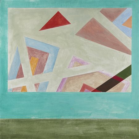 MONCADA IGNAZIO (n. 1932) Oliverture. 1972. Olio su tela . Cm 100,00 x 100,00. Firma, titolo e anno al retro. Lievi difetti.