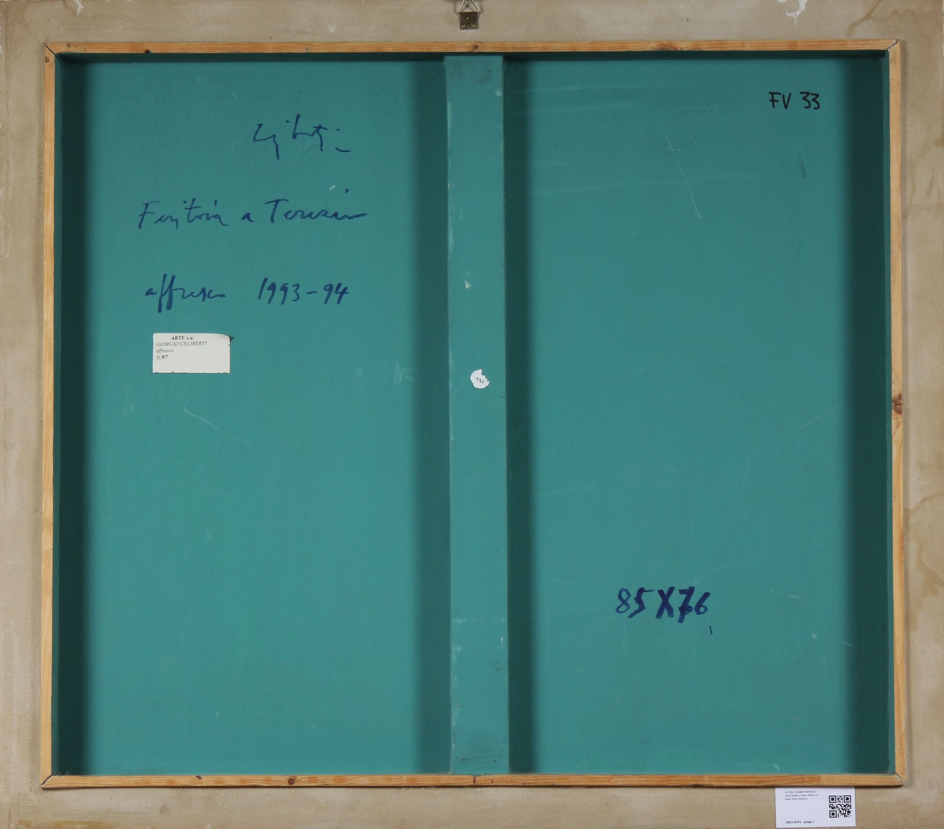 CELIBERTI GIORGIO (n. 1929) Feritoia a Terezin. Affresco su tavola. Cm 76,00 x 85,00. Firma titolo e anno al retro. Autentica dell'artista su fotografia. Certificato di autenticità Telemarket.