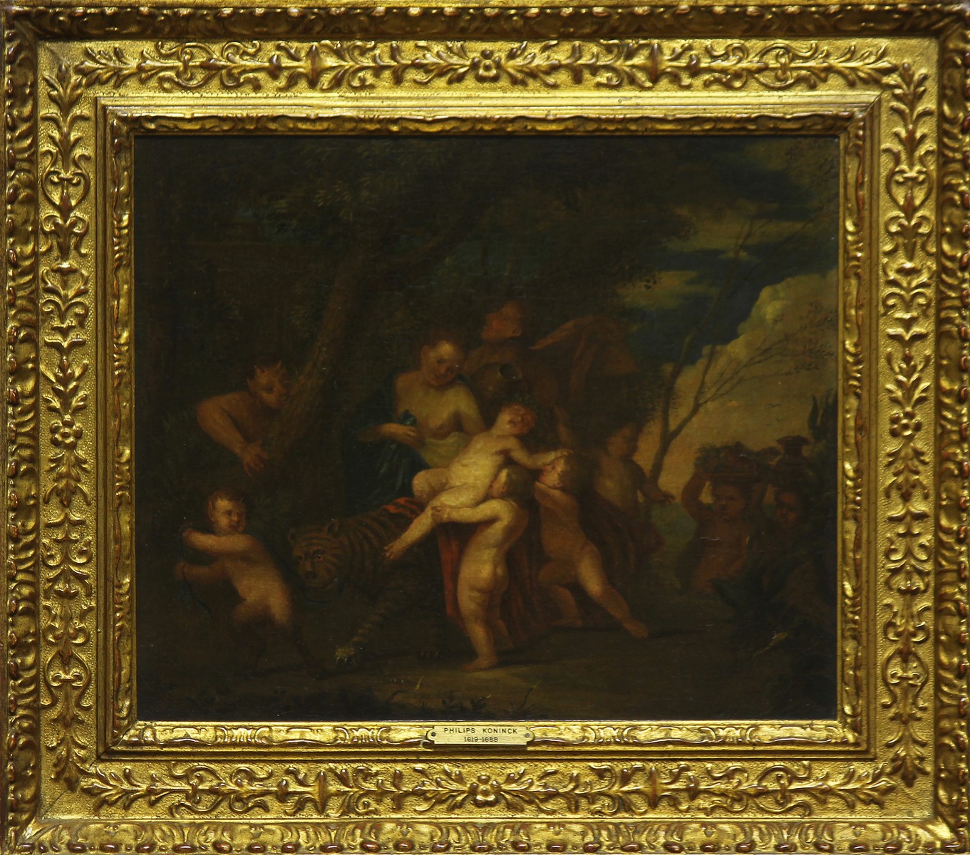 ARTISTA FIAMMINGO DEL XVII SECOLO Allegoria di putti con fauni e tigre. Olio...