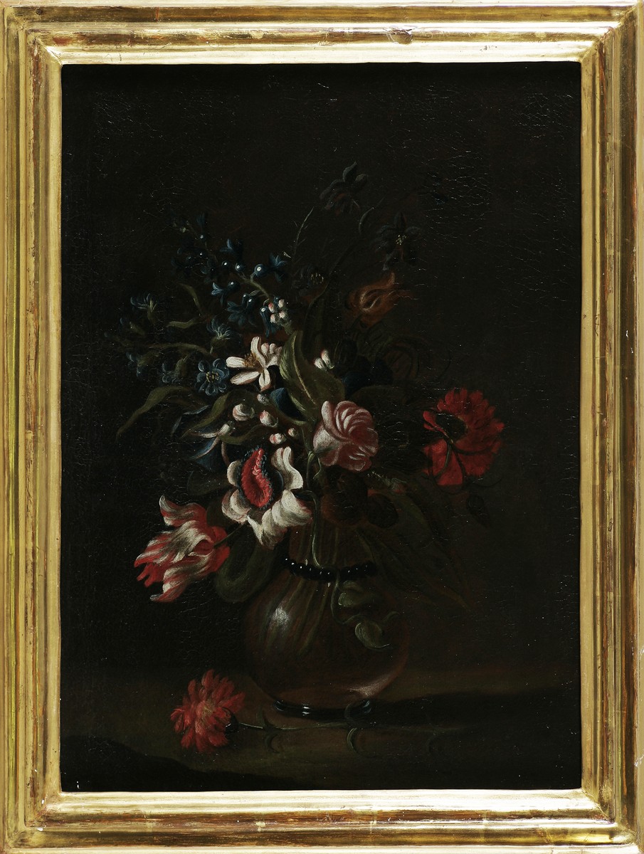NUZZI MARIO (1603 - 1673) AMBIENTE DI. Natura morta di fiori. Olio su tela . Cm 42,50 x 58,00. . Cornice presente