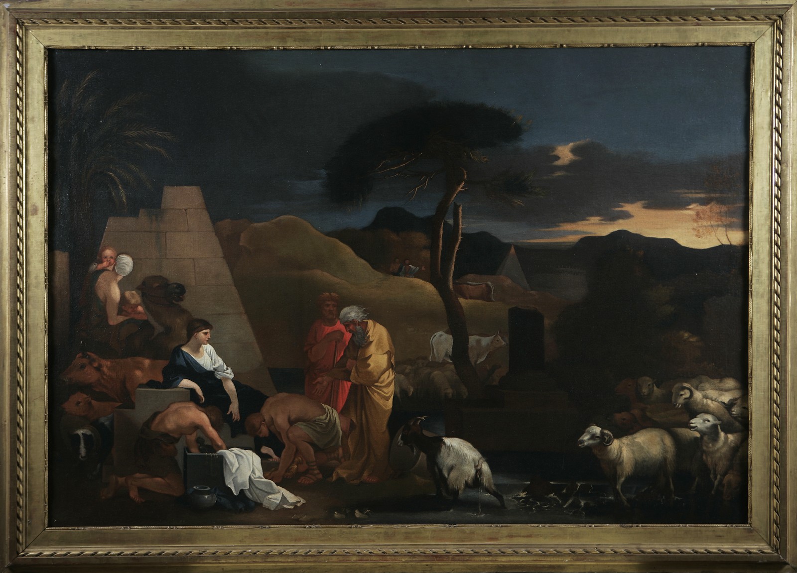 ARTISTA FRANCESE DEL XVII SECOLO Personaggi in un paesaggio. Olio su tela . Cm 140,00 x 100,00. L'opera è corredata da una parere scritto di Didier Bodart che l'attribuisce a Sebastien Bourdon. Cornice presente
