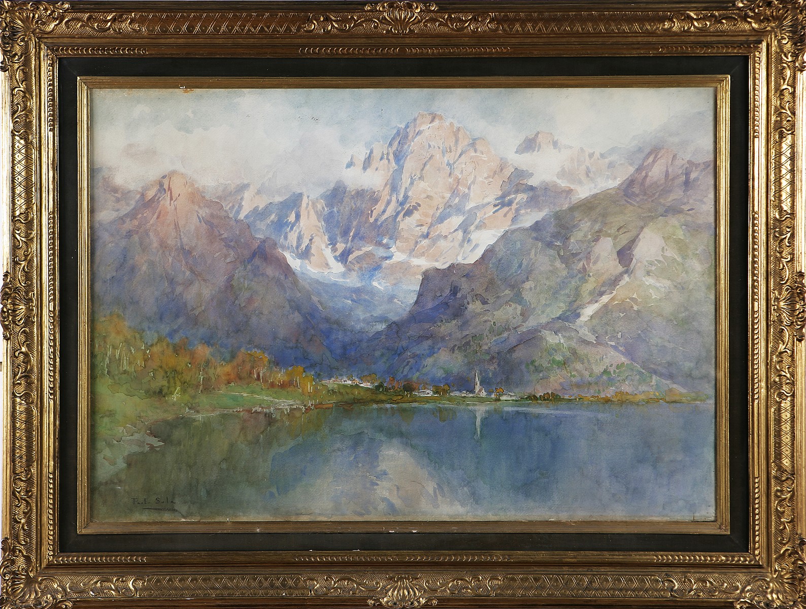 SALA PAOLO (1859 - 1924) Veduta del lago di Alleghe. Acquerello su carta. Cm 97,00 x 67,00. Firma in basso a sinistra. Cornice presente