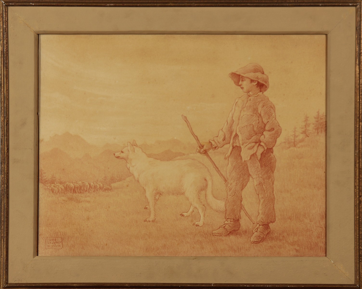 GEORGIEV BORIS (1888 - 1962) Pastorale. 1923. Matita e seppia su carta incollata su tavola. Cm 51,00 x 39,00. Firma in basso a sinistra.Opera pubblicata sul libro" Boris Georgiev of Varna" testi a cura di Plamena Dimitrova-Racheva, edito da Kibea, pag 40-41. Cornice presente