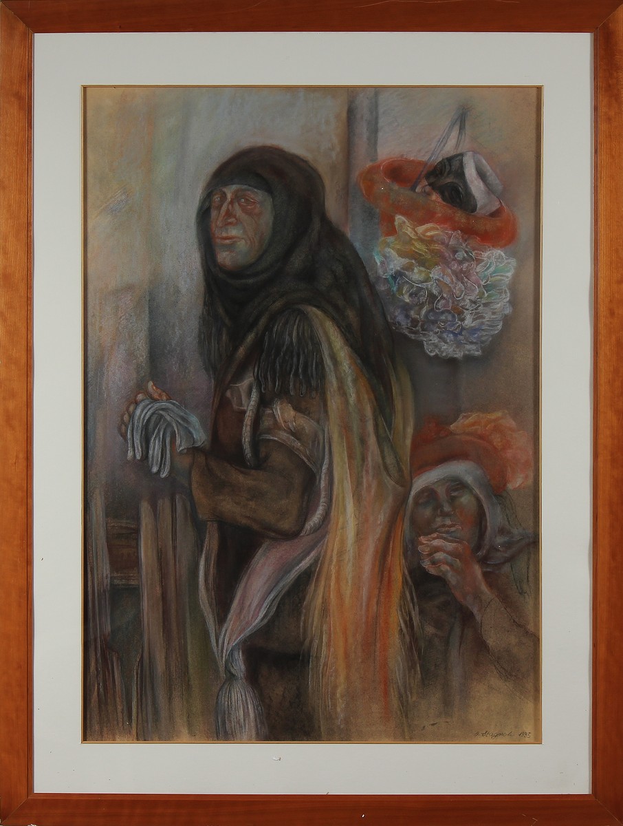 STAGNOLI ANTONIO (n. 1922) Ballerino e bambino. 1995. Pastelli su cartone. Cm 71,00 x 99,00. Firma e anno in basso a destra. Al retro reca il cartiglio della Galleria La Cornice, Desenzano del Garda. Cornice presente