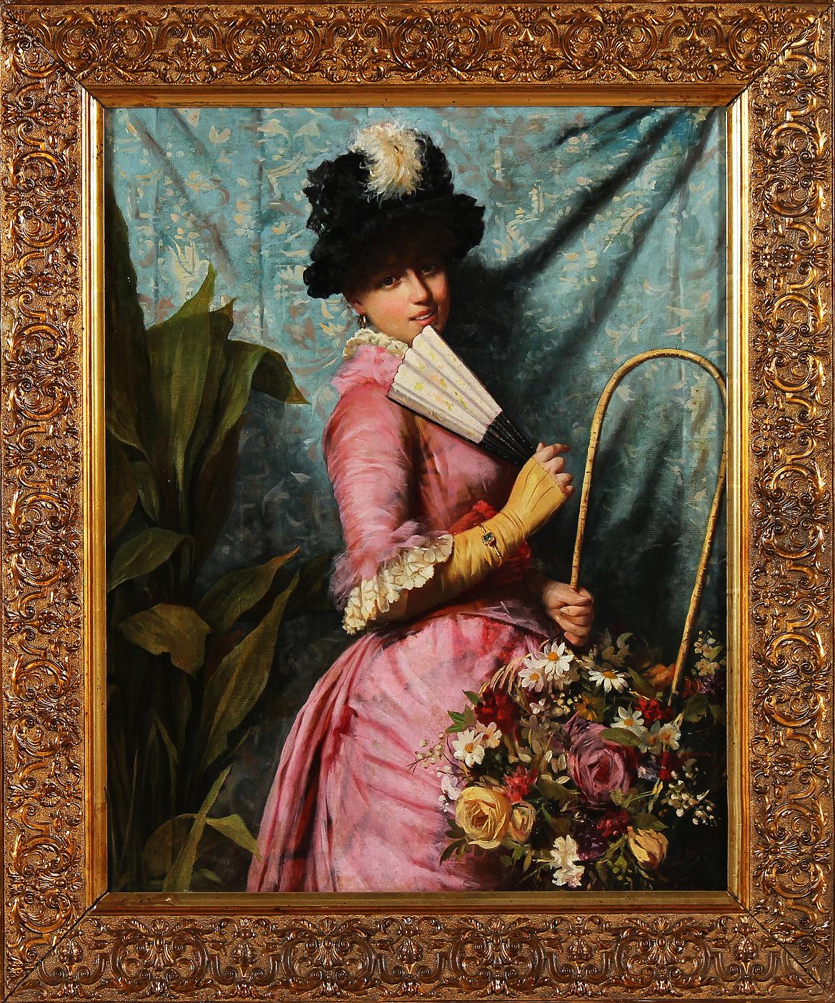 COSTA GIOVANNI (1833 - 1893) Fanciulla con fiori. Olio su tela . Cm 56,00 x 70,00. Si ringrazia Andrea Baboni per aver confermato l’autenticità dell’opera sulla base della fotografia. Cornice presente