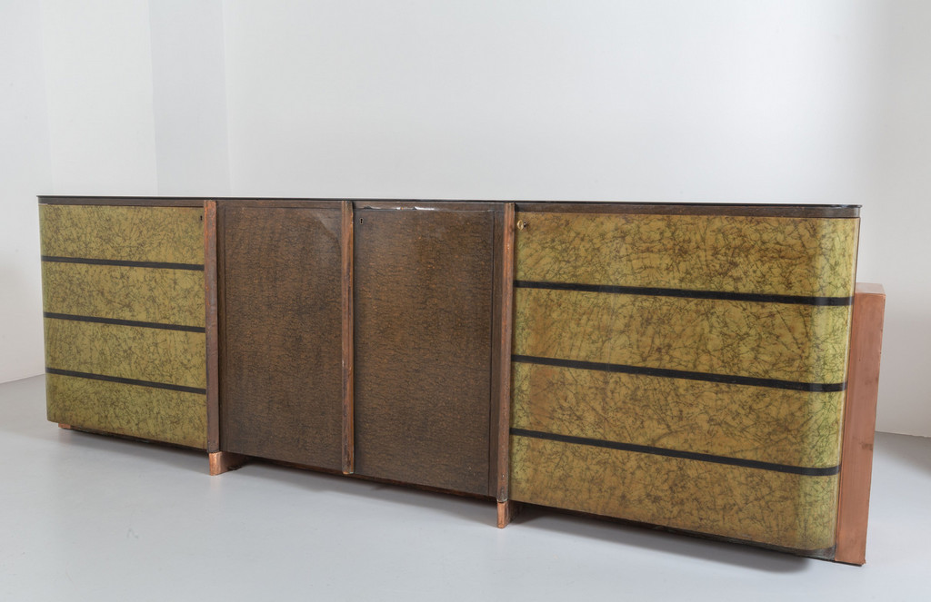 Legno impiallacciato in buxus base e fianchi rivestiti in rame