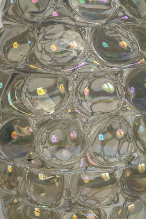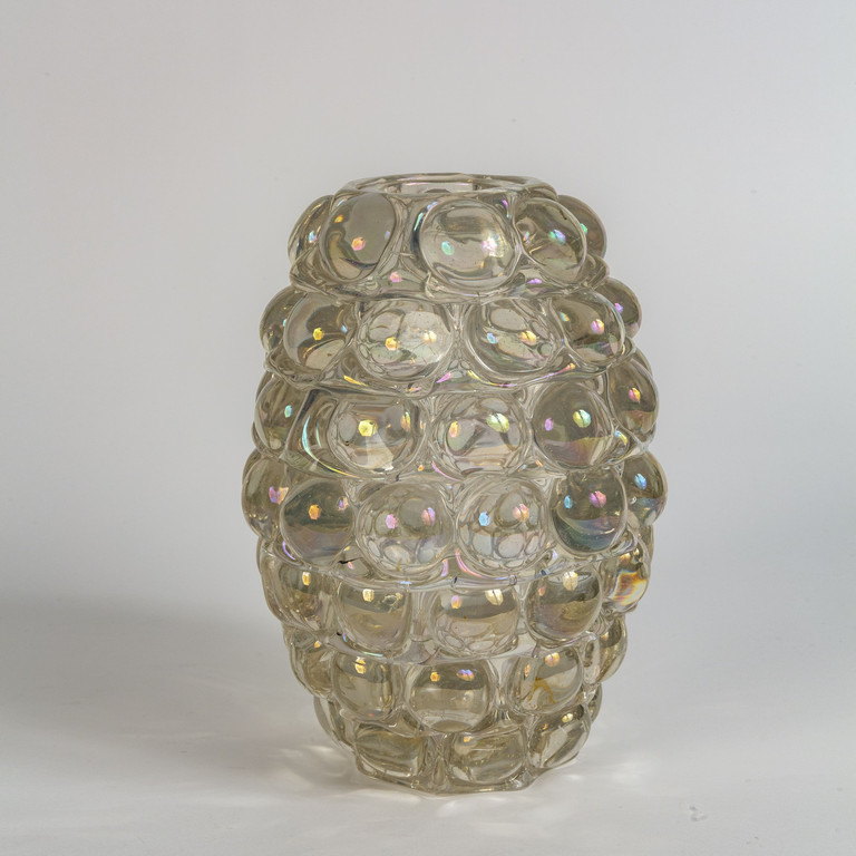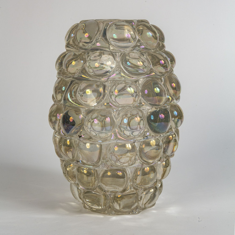 Un vaso 'lenti' in cristallo iridato con applicazione di semisfere ottenute a stampo 1940 altezza cm. 26