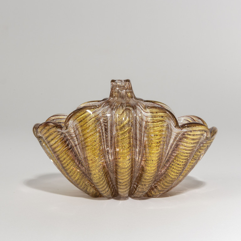 Una coppa 'Zebrata' con applicazione di foglia oro anni '40.