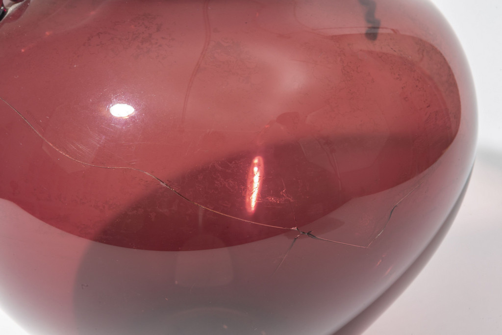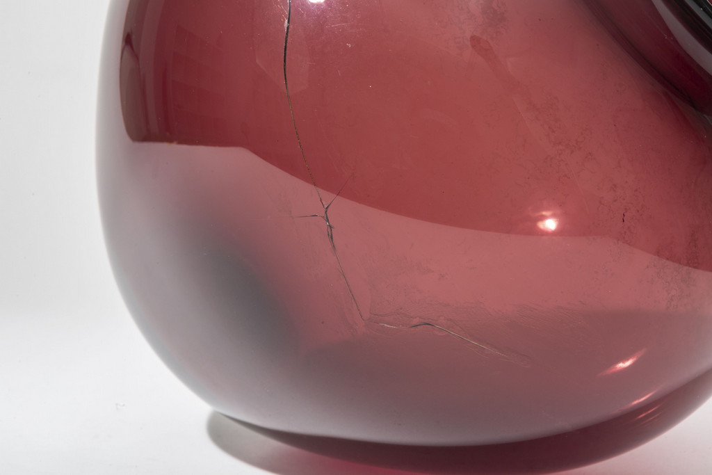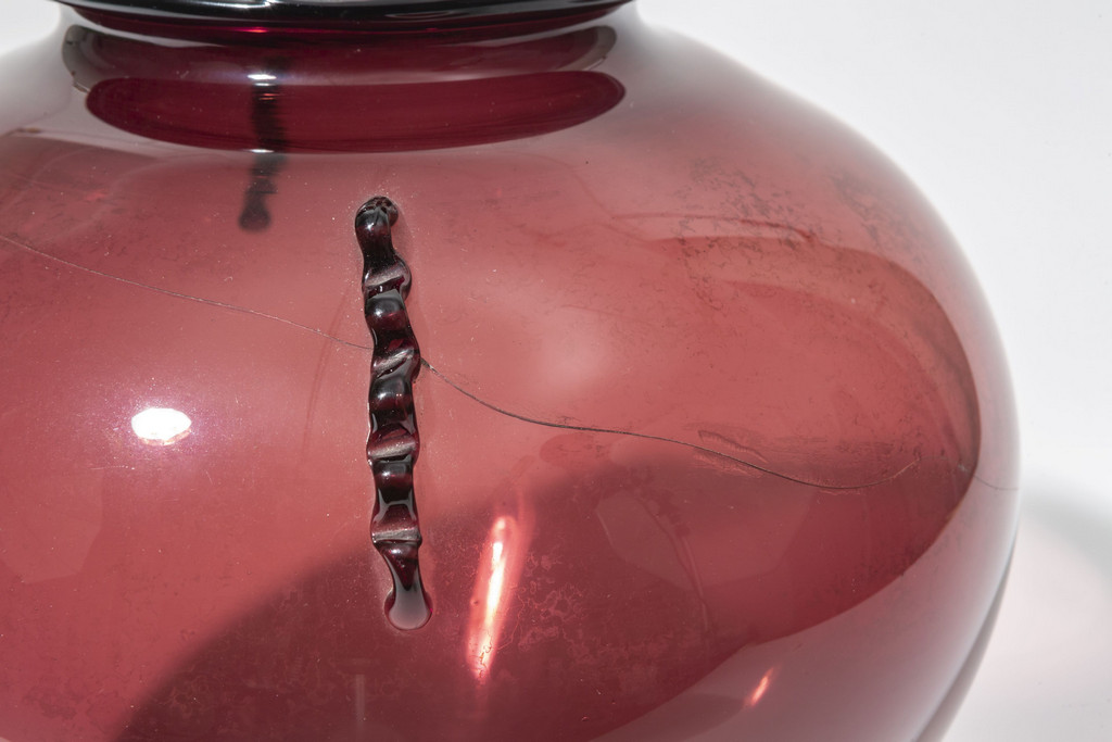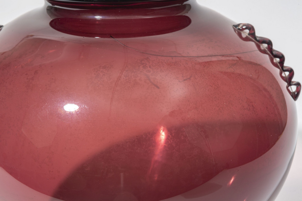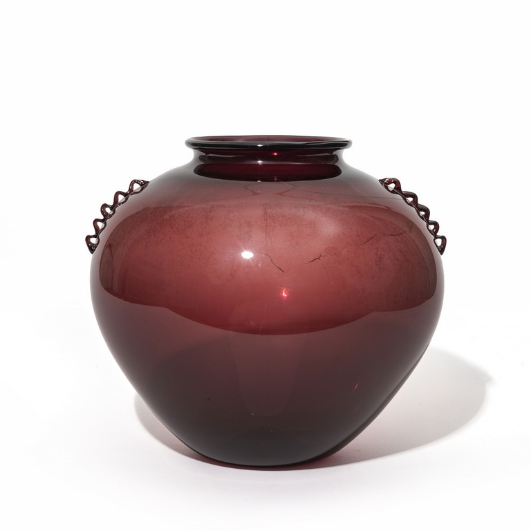 Un grande vaso in vetro trasparente ametista con due anse a serpentina circa 1922 venatura Altezza cm. 24.5