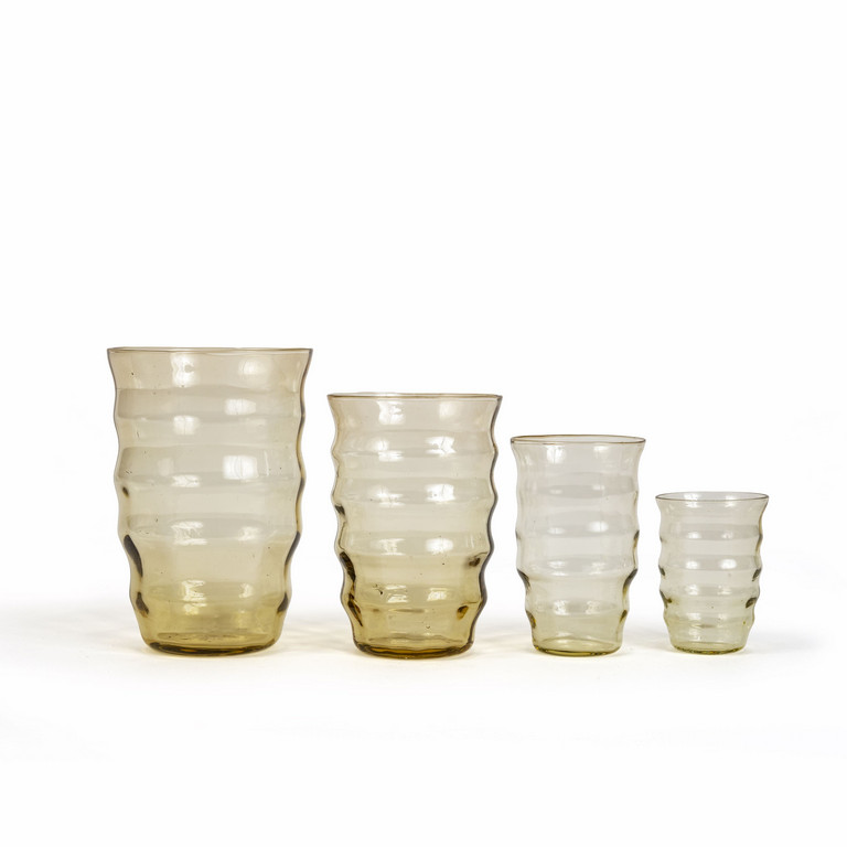 Un servizio di bicchieri PER 6 in vetro trasparente giallo ambrato
