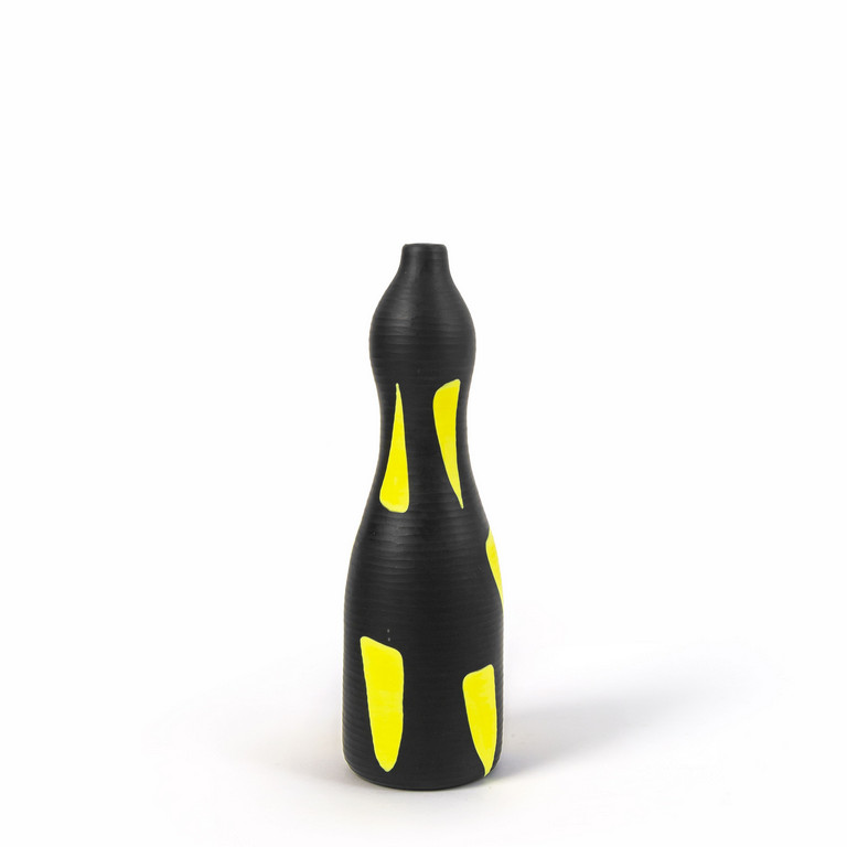 Un vaso 'arsos' in vetro molato nero e macchie gialle 2003