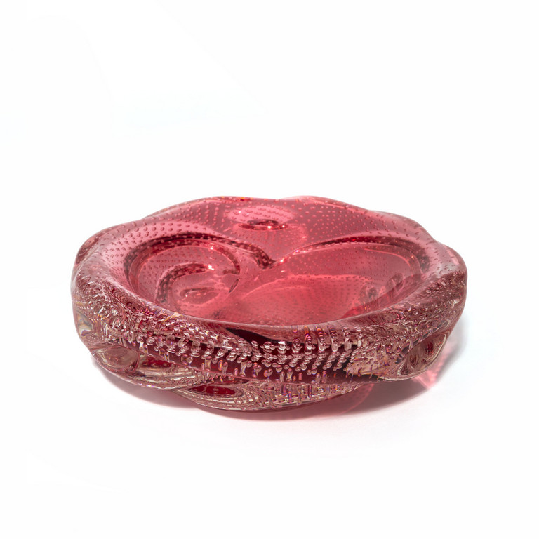Una coppa 'bullicante' in vetro pesante trasparente rubino a bollicine 1937