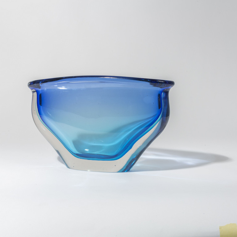 Un vaso in vetro sommerso blu e acquamarina a sezione schiacciata Cm. 20 (h) x 33 x 11.5