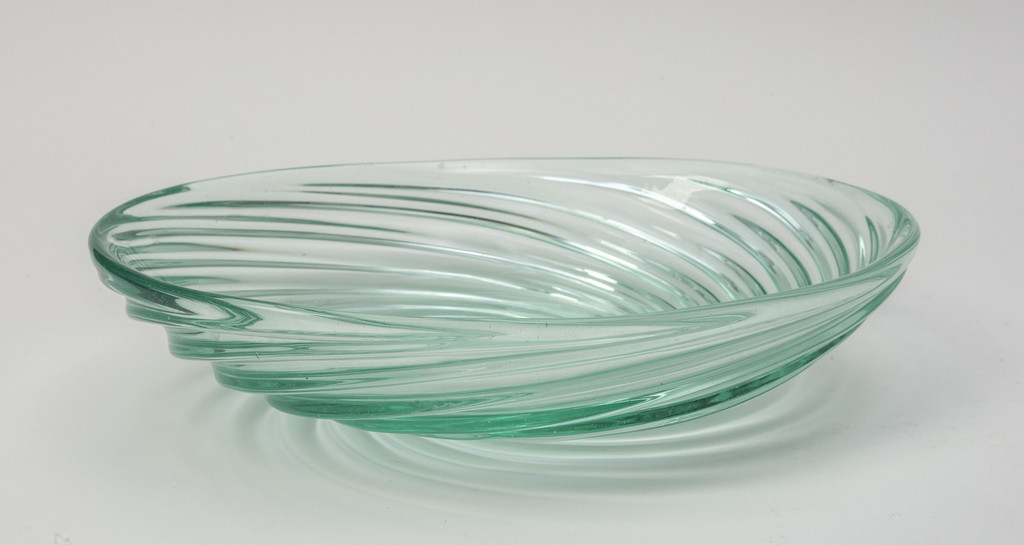 Una coppa ovale 'diamante' verdino 1935 marca ad acido 'venini murano'