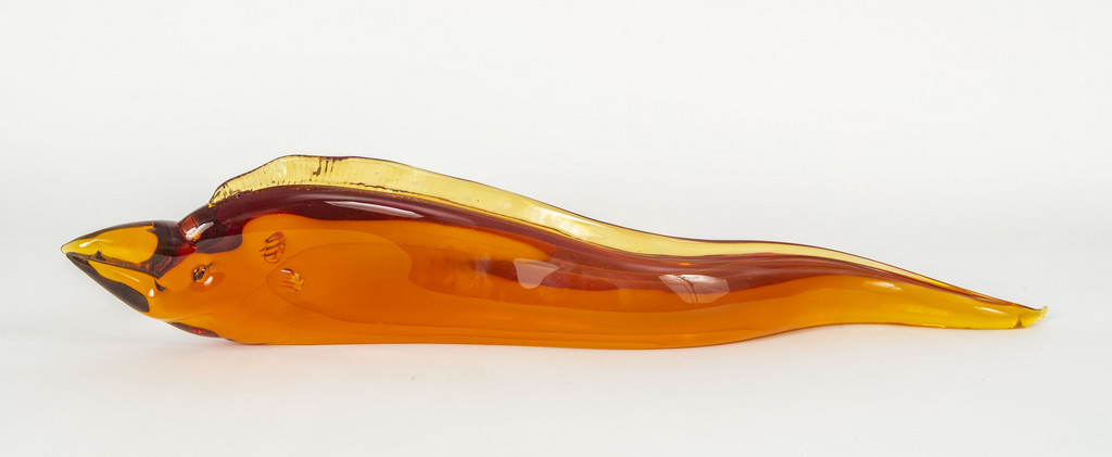 Una figura di anguilla in vetro ambra a piu? sommersioni circa 1970