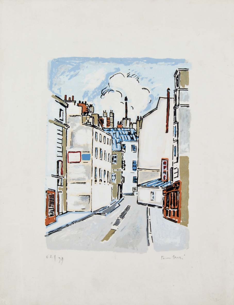 TAMBURI ORFEO Jesi 1910 - Parigi 1994 Parigi serigrafia es. 62/99 55,5x42,5 firma in basso a destra tiratura in basso a a sinistra Edizione La Meridiana Verona - timbro a secco in basso a destra