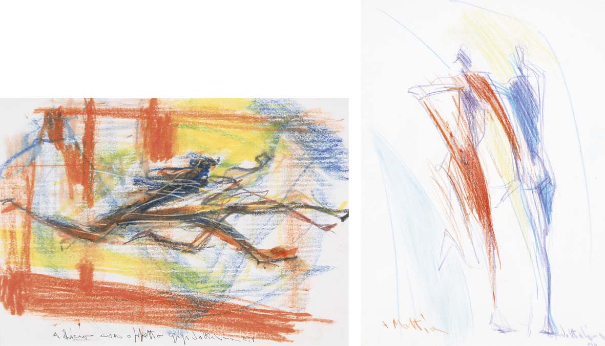 VOLTOLINA LUIGI Valona 1942 Soggetti vari 2010-2011 lotto di 2 pastelli su carta 33x23 cad. firma data e dedica ad personam in basso