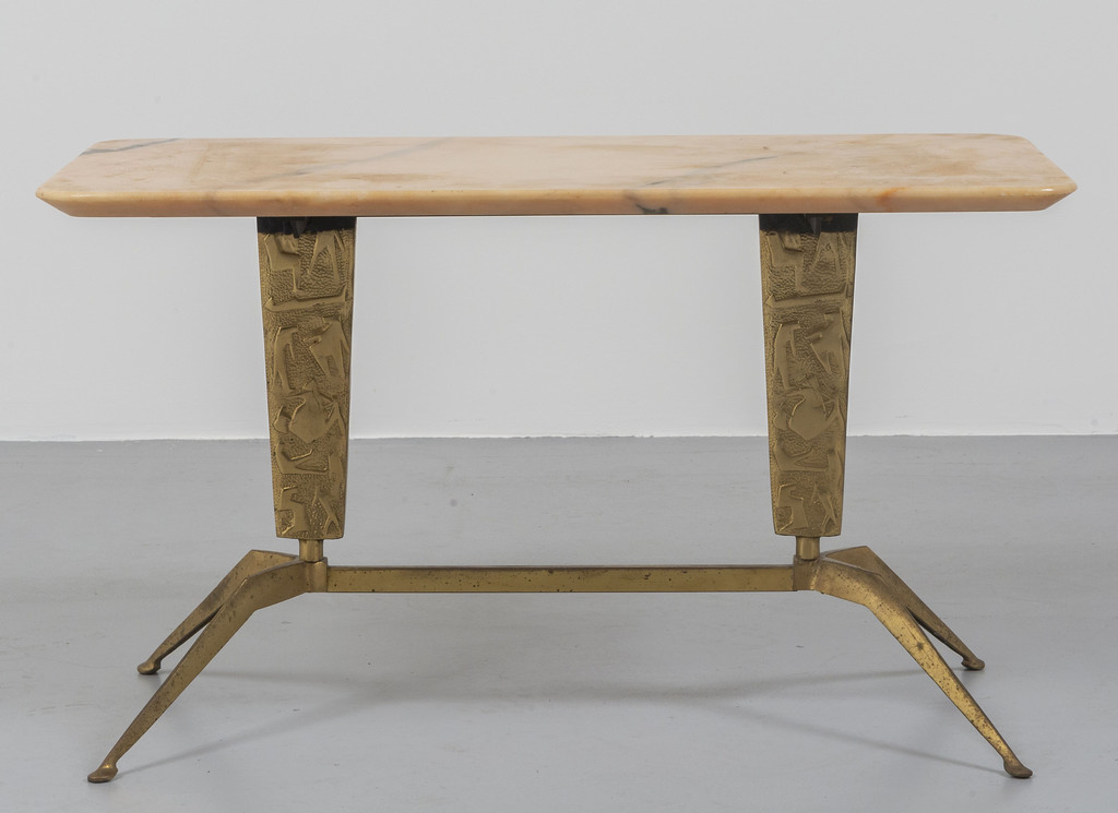 Previous Lot 1147 Next Aste Boetto - Via Mura dello Zerbino 10R, 16122 Genova DESIGN E ARTI DECORATIVE DEL '900 Design a Arti Figurative del '900 Wednesday 26 October 2022 hours 10:30 (UTC +01:00) TAVOLINO UN TAVOLINO anni '50. Ottone marmo. Cm 44 x 75 x 39.
