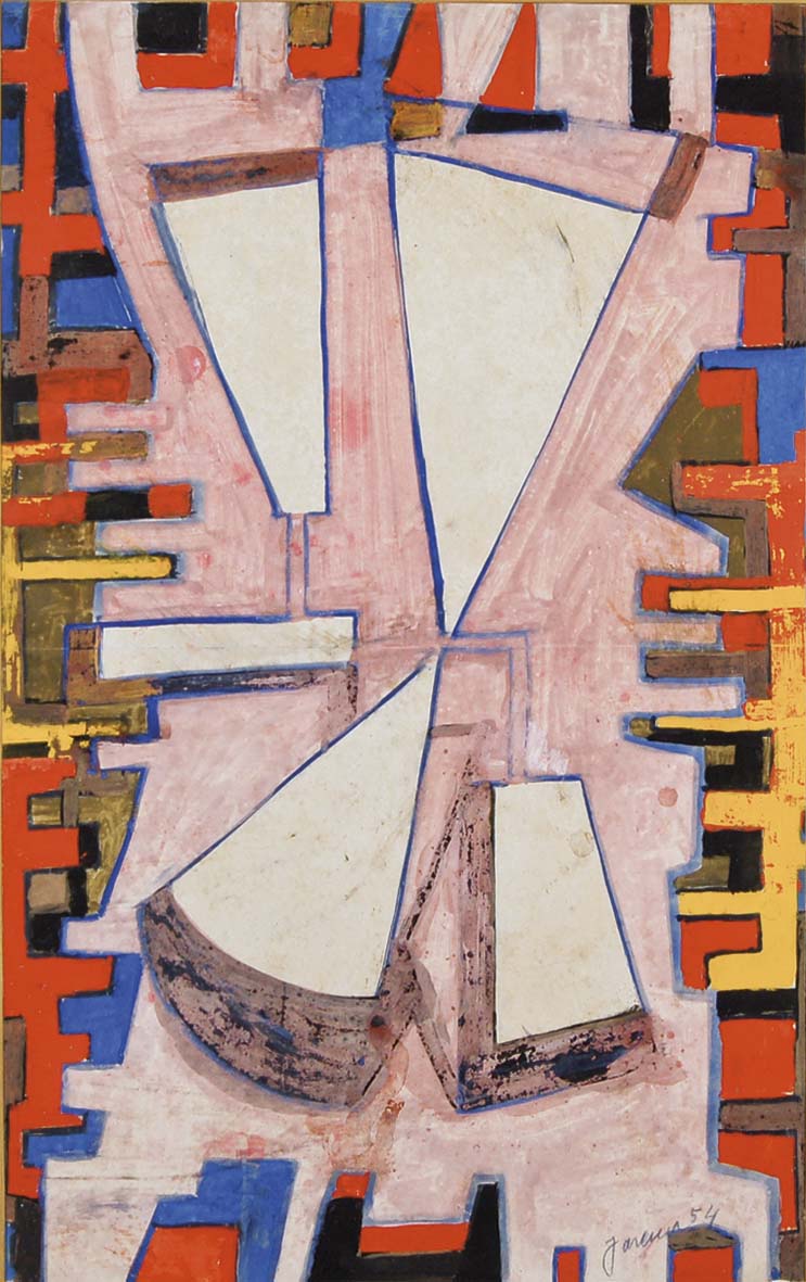 JAREMA JOZEF Polonia 1900-1974 senza titolo 1954 tecnica mista su carta riportata su tavola 61,5x38,5 firma e data in basso a destra Autentica del dr. Pagani al retro