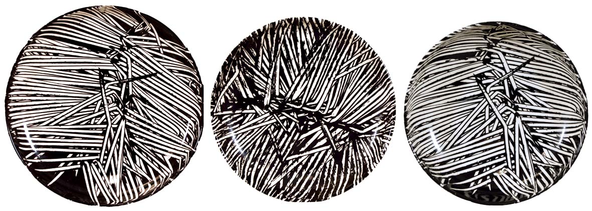 SCANAVINO EMILIO Genova 1922 - Milano 1986 senza titolo lotto di 3 piatti in ceramica es. 38/100 - 69/100 - 65/100 diam. cm. 23 - 20 - 19,5 firma e tiratura al retro