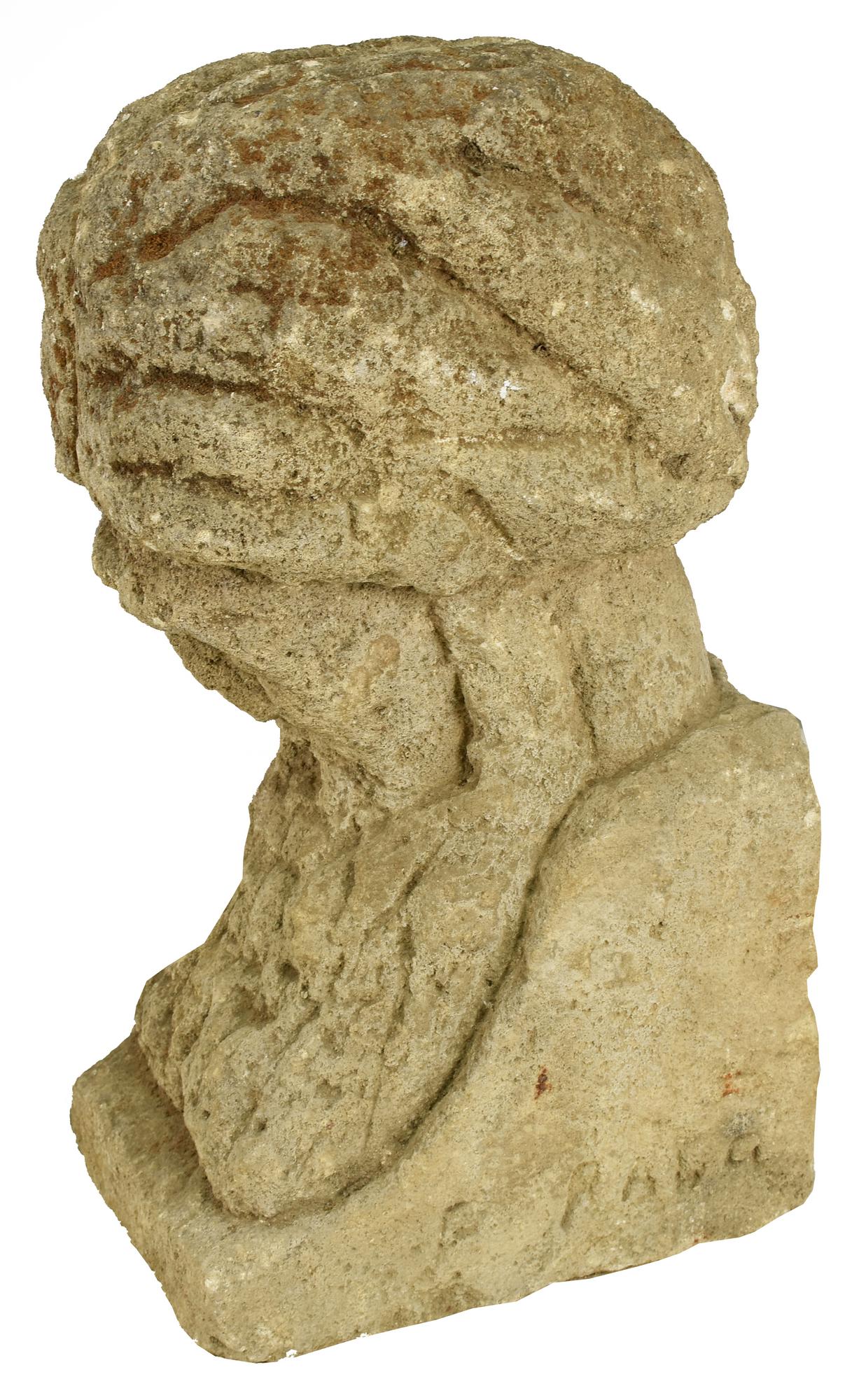 Ignoto TESTA DI FILOSOFO scultura in pietra, cm 50x20x26 firma incisa a lato...