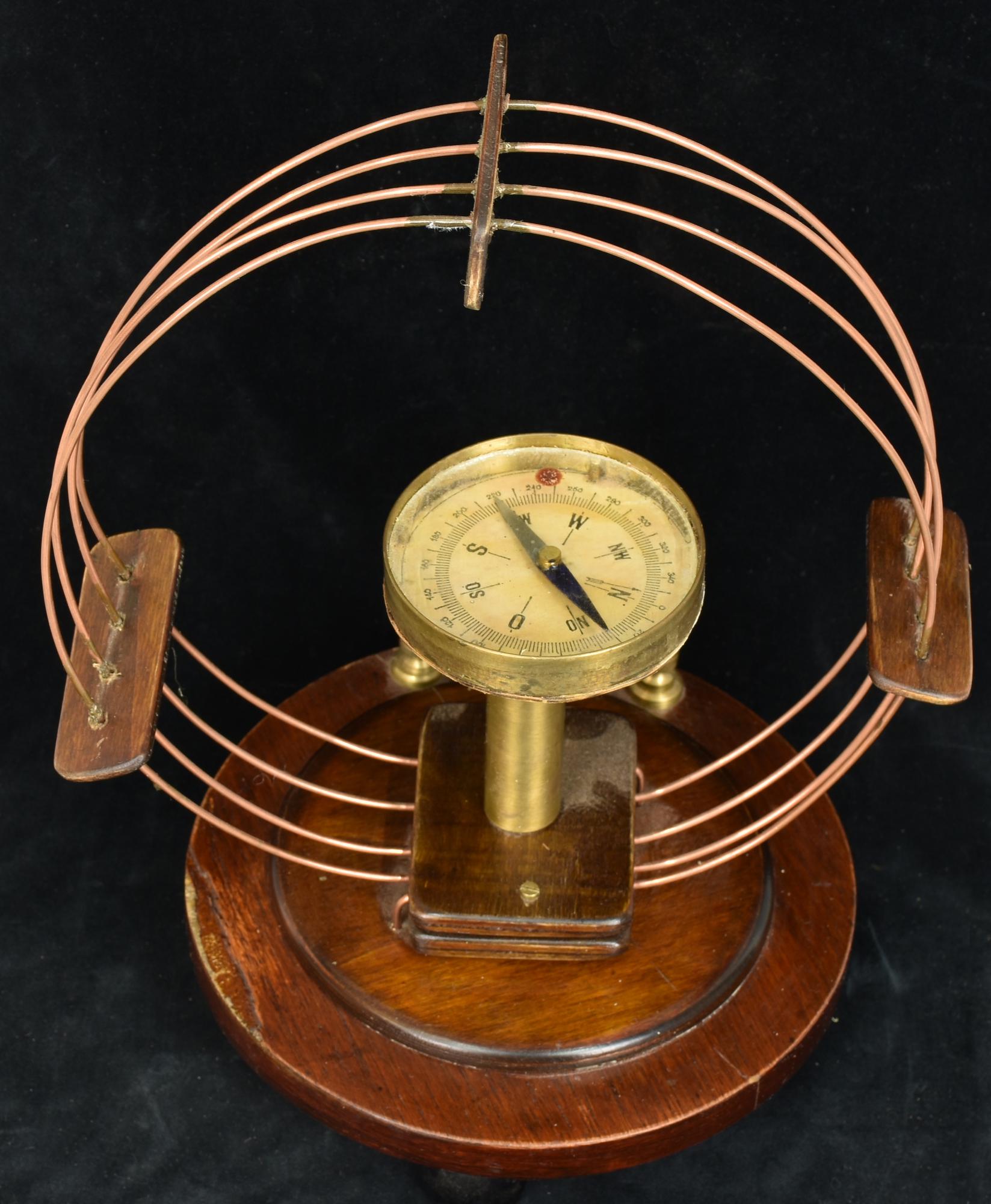 STRUMENTO SCIENTIFICO per misure elettriche con bussola, con base in legno,...