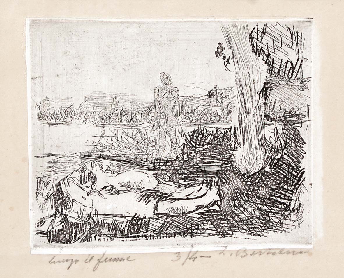 BARTOLINI LUIGI Cupramontana 1892 - Roma 1963 Lungo il fiume acquaforte es. 3/4 13x15,5 firma titolo e tiratura in basso