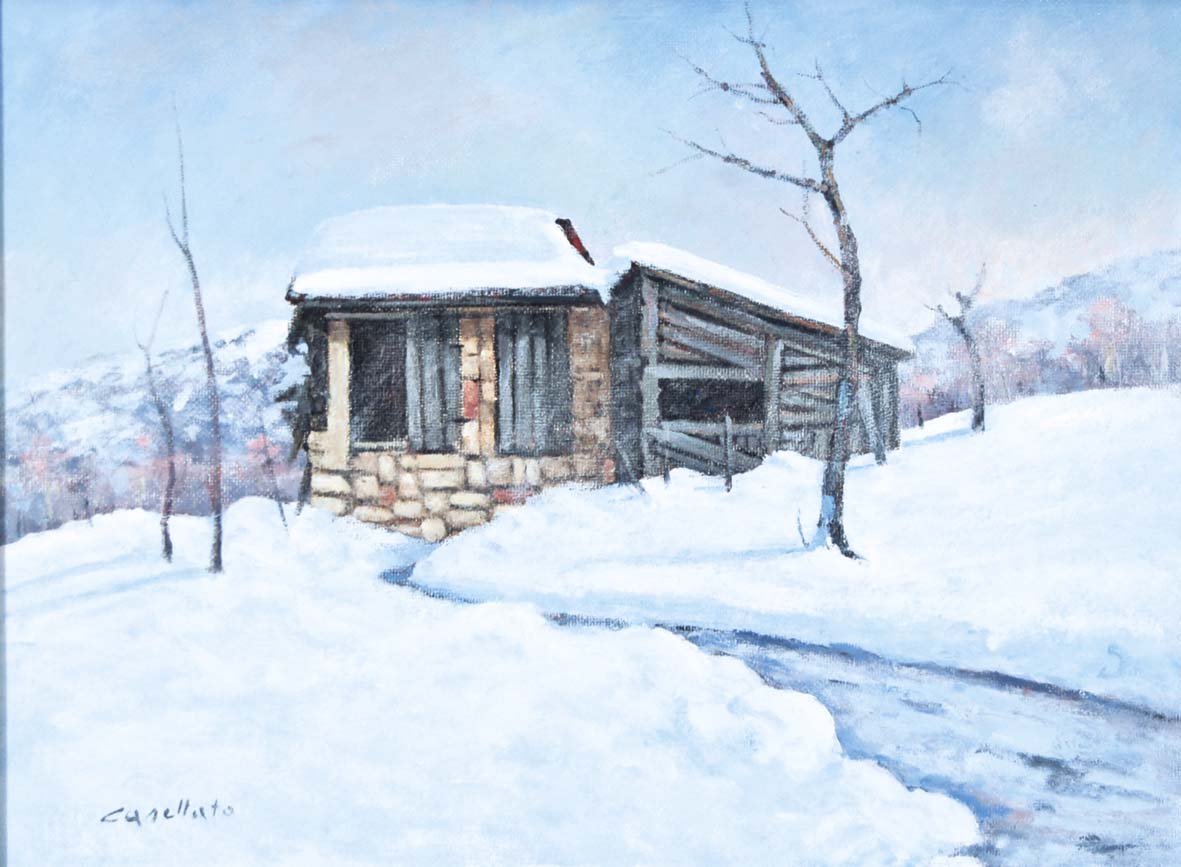 CASELLATO GILBERTO Venezia 1938 Paesaggio invernale olio e tecnica mista su...