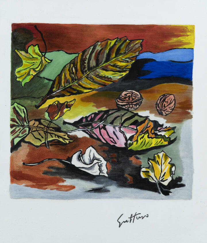 RENATO GUTTUSO<BR>Bagheria (PA) 1911 - 1987 Roma<BR>"Foglie secche con due noci" 1972