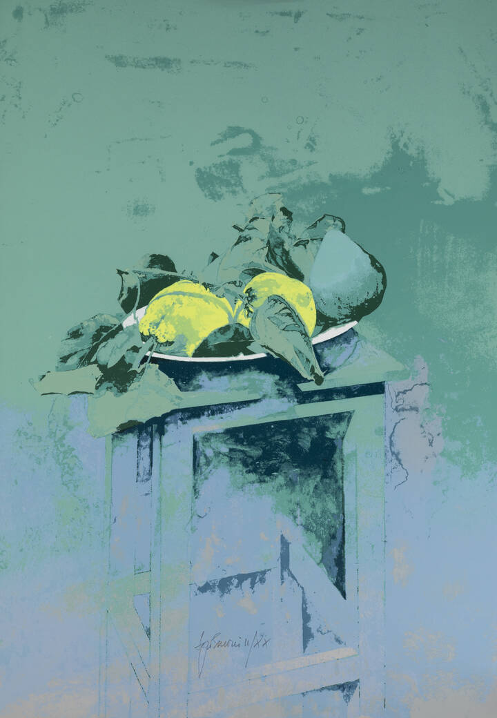 SERGIO SARONI<BR>Torino 1934 - 1991<BR>"Natura morta con frutta"