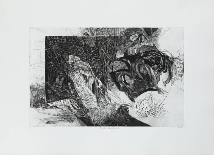 50x70 foglio, 31,5x49 acquaforte e acquatinta tirata a braccia da Giacomo Figus nel suo laboratorio di stampatore in Torino, es. 2/100
